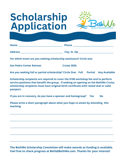 IF SEEKING ASSISTANCE, SEND COMPLETED APPLICATION TO: BethWe, 1481 30th Avenue, Vero Beach, FL 32960